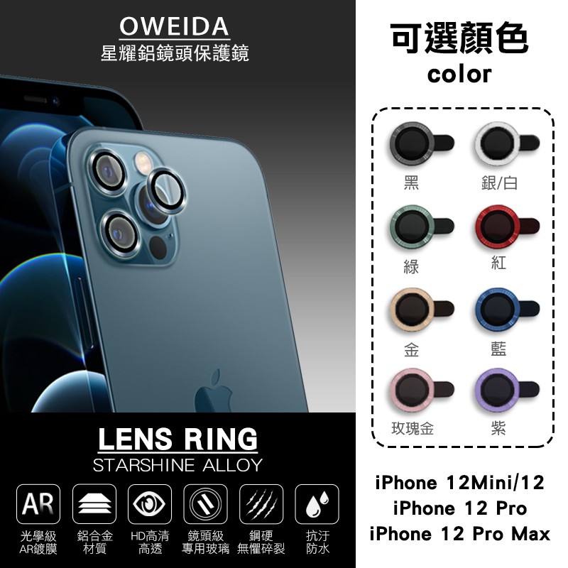 Oweida iPhone 12Mini/12 12Pro 12ProMax 星耀鋁金屬鏡頭保護鏡 鏡頭環 鏡頭貼