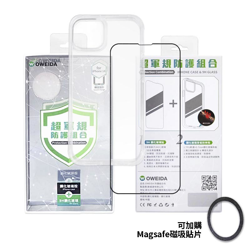Oweida iPhone14 15 玻璃氣墊防摔超值組(保護貼+氣墊防摔殼) PRO MAX