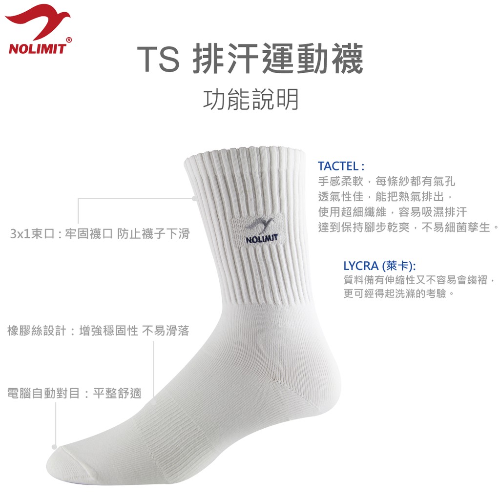 【NOLIMIT】吸濕排汗萊卡運動襪|美國杜邦 TACTEL纖維 吸濕排汗 LYCRA 自行車襪 腳踏車襪 台灣製 TS
