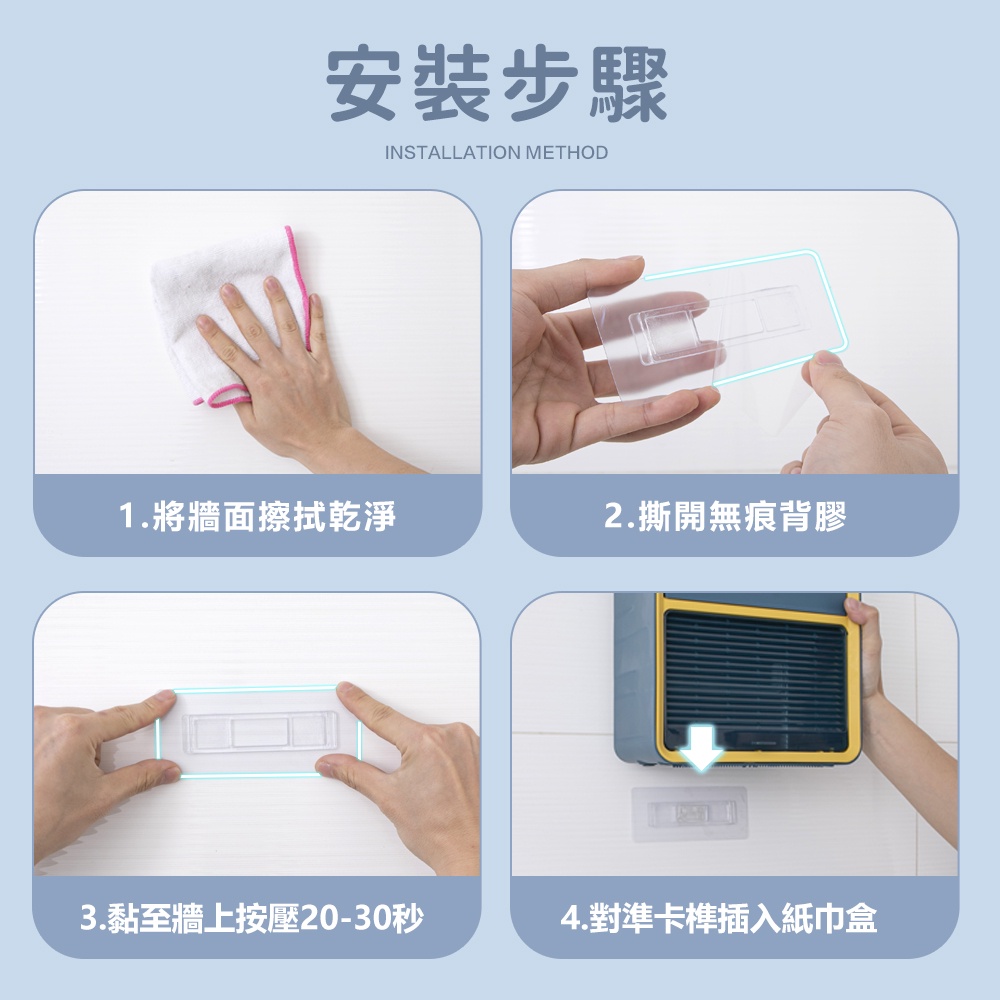 【FL生活+】無痕壁掛紙巾盒 壁掛面紙盒 廁所衛生紙架 廁所衛生紙盒 廁所面紙盒 浴室收納 浴室收納盒 浴室衛生紙盒