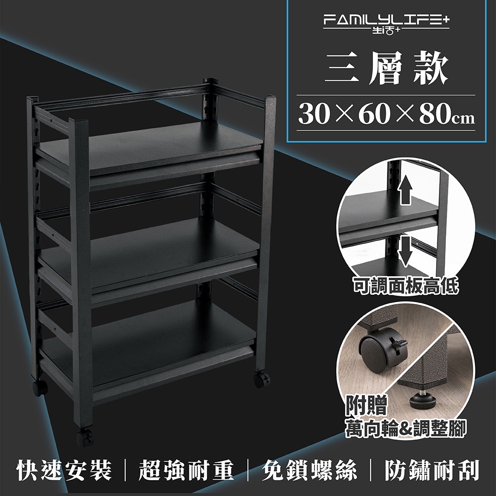 【FL生活+】快裝式岩熔碳鋼三層置物架(FL-258)30x60x80公分 免螺絲角鋼 展示架 層架 貨架 角鋼架