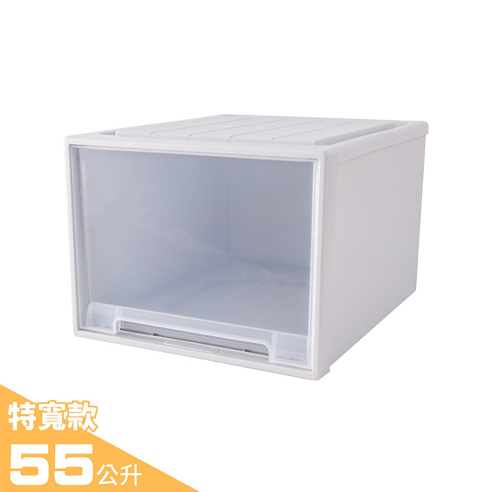 【FL生活+】大容量抽屜式可疊加耐重收納箱 特寬款-55公升 抽屜收納櫃 收納櫃 抽屜櫃 整理箱 衣物收納箱 免安裝