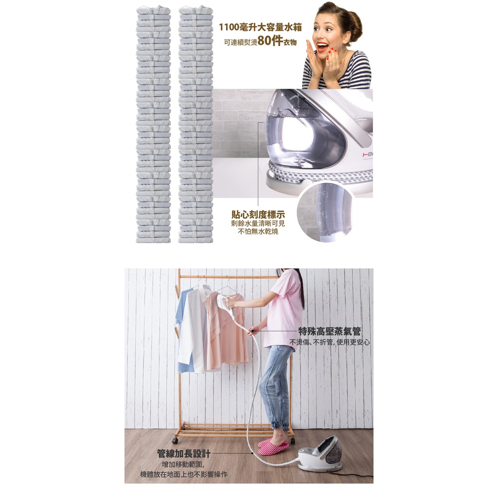 【FL生活+】噴射式蒸氣掛燙機(HL-958)免灑水~免墊布~適用各種材質衣物~可燙線~保證不滴水~直立式蒸汽熨斗