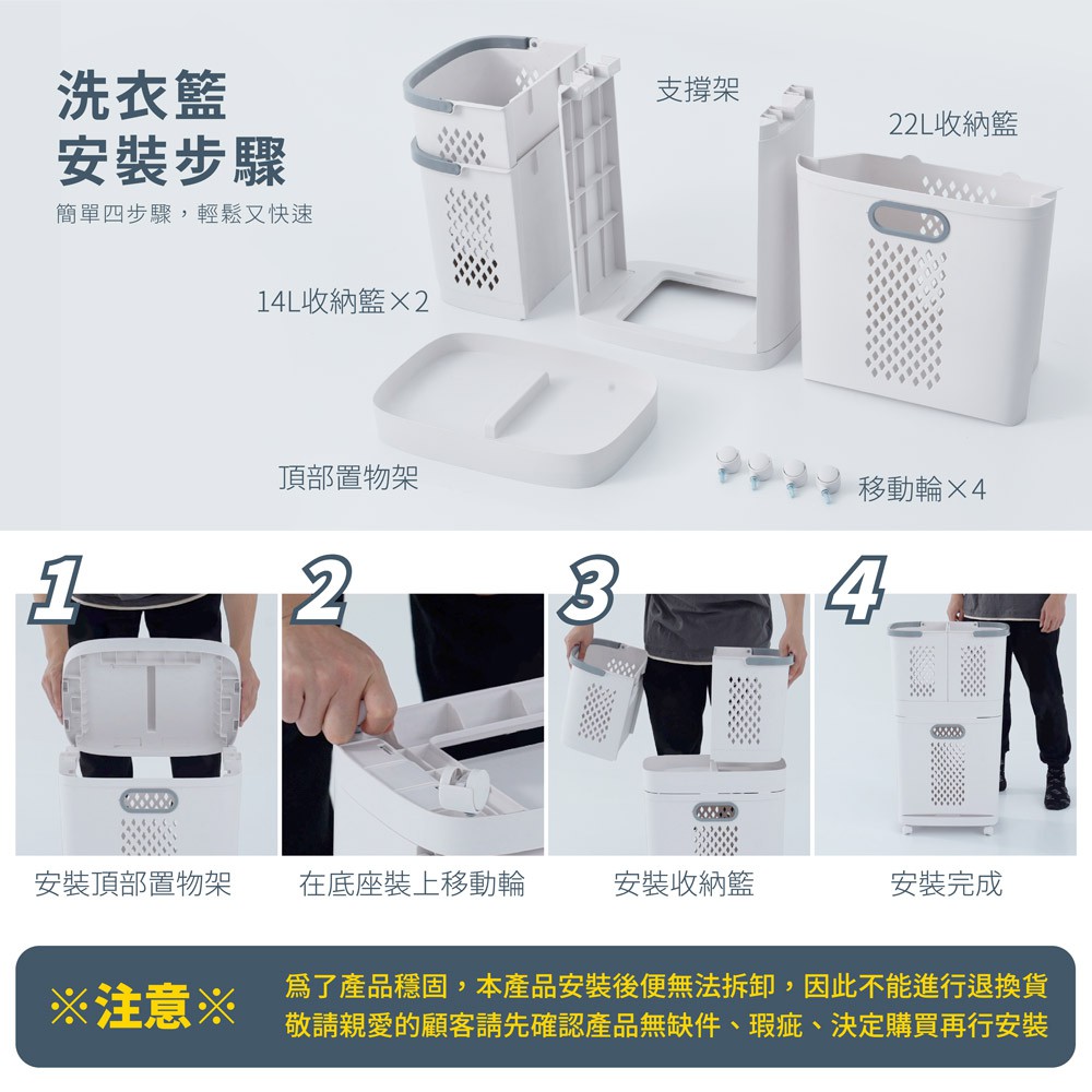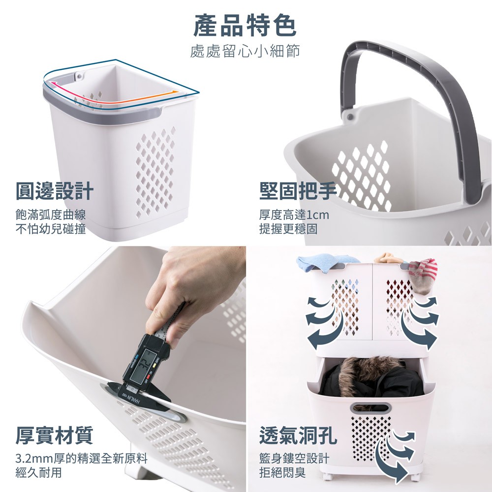 【FL生活+】北歐簡約洗衣籃 分類洗衣籃 推車 收納籃 浴室收納架 衣物收納 三層推車 髒衣籃 洗衣籃推車 雙層洗衣籃