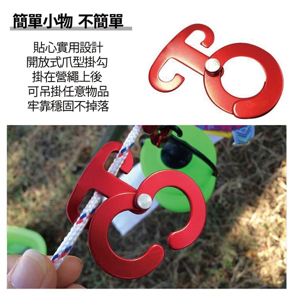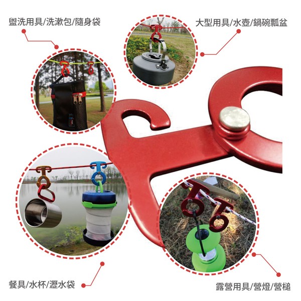 【FL生活+】超輕量航太鋁雙環式防滑營繩掛鉤(FL-008) 鋁合金O型扣 營繩上的止滑掛勾 掛燈條超好用 可以掛杯子