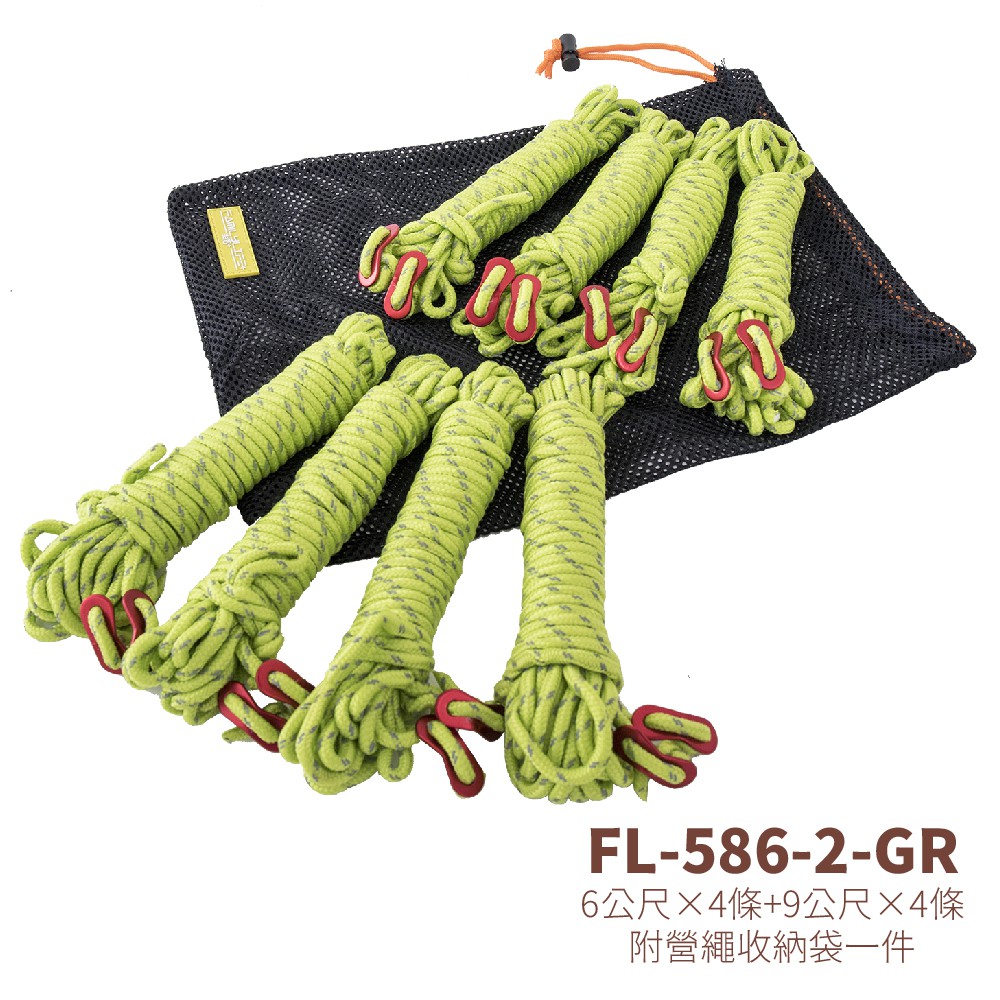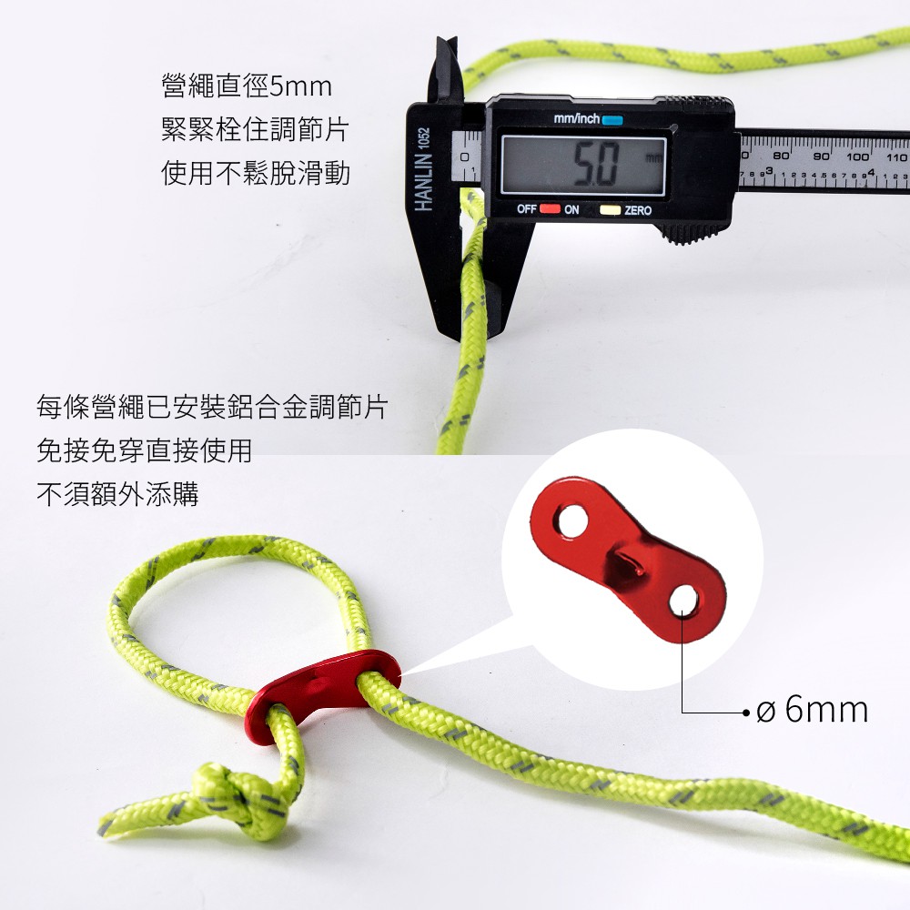 【FL生活+】營繩 帳篷天幕專用營繩 含調節片 高強度抗風 夜光 夜光反光 反光 5mm 雙頭營繩 送收納袋 露營反光繩