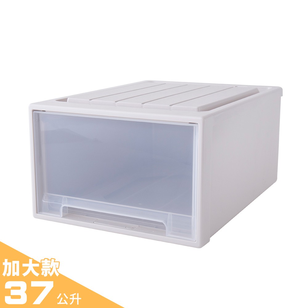 【FL生活+】大容量抽屜式可疊加耐重收納箱 加大款-37公升 抽屜收納櫃 收納櫃 抽屜櫃 整理箱 衣物收納箱 免安裝