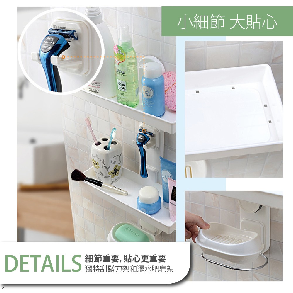 【FL生活+】多功能雙層衛浴專用置物架(SQ-1059)浴室三角置物架 廁所置物架 強力吸盤置物架 瀝水架 收納架
