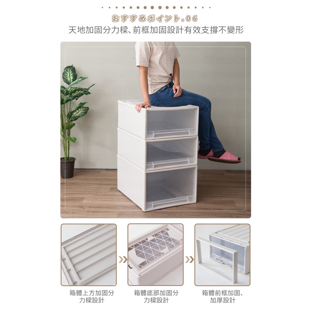 【FL生活+】大容量抽屜式可疊加耐重收納 加長款-47公升 抽屜收納櫃 收納櫃 抽屜櫃 整理箱 衣物收納箱 免安裝