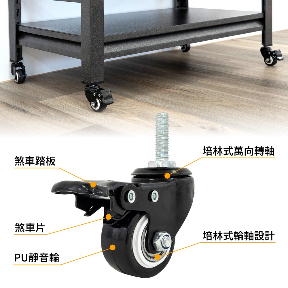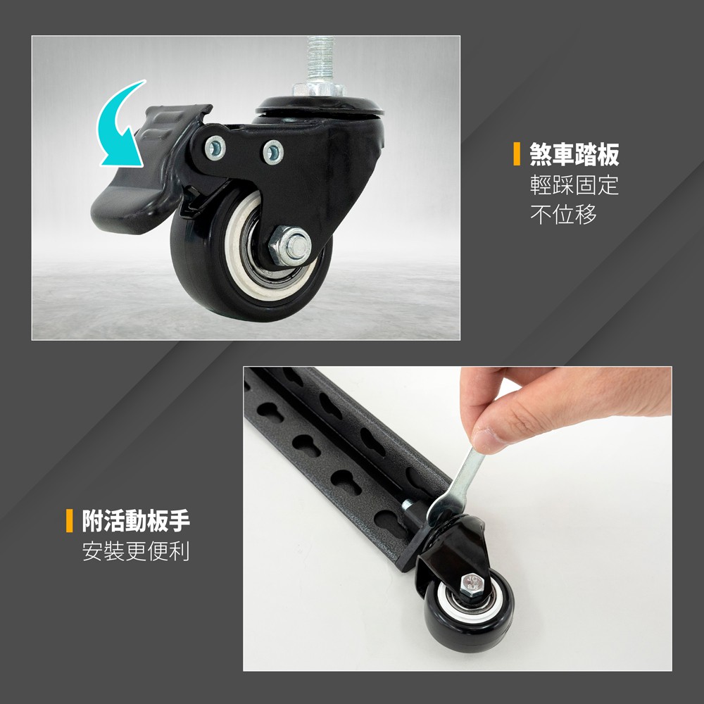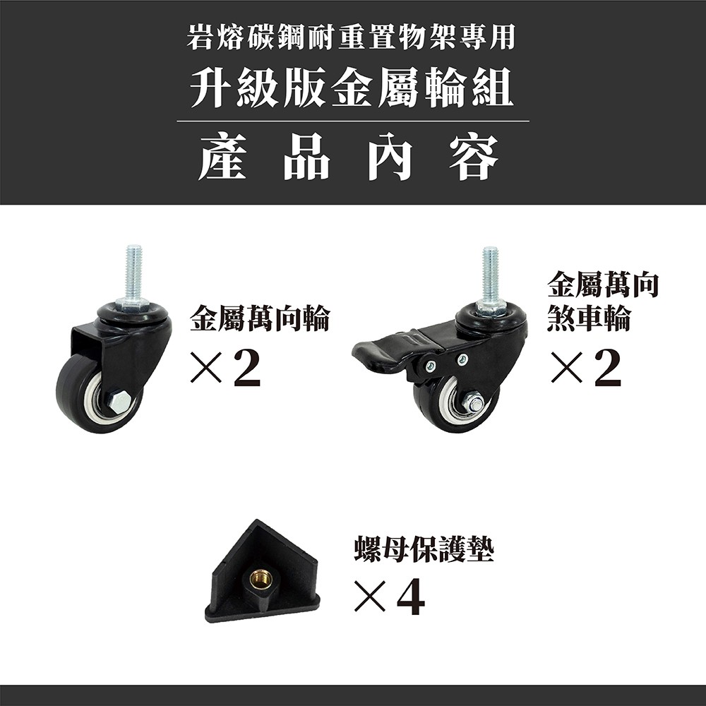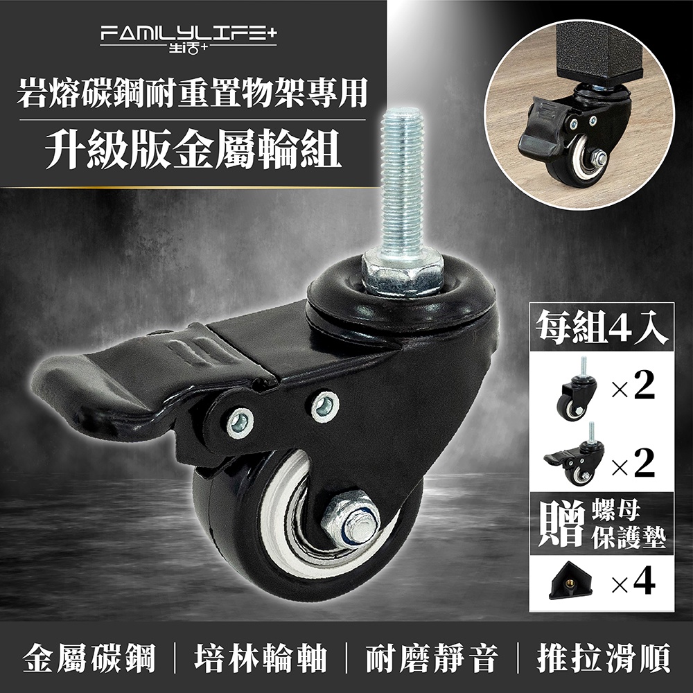 【FL生活+】岩熔碳鋼耐重置物架專用-升級版金屬輪組(萬向輪*2+萬向煞車輪*2+扳手*1) 鐵架 鐵力士架 貨架
