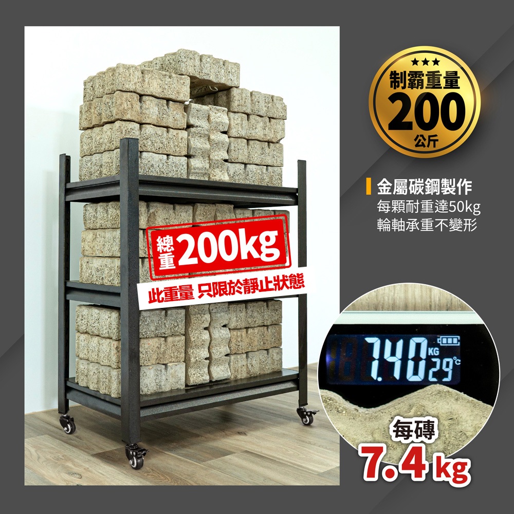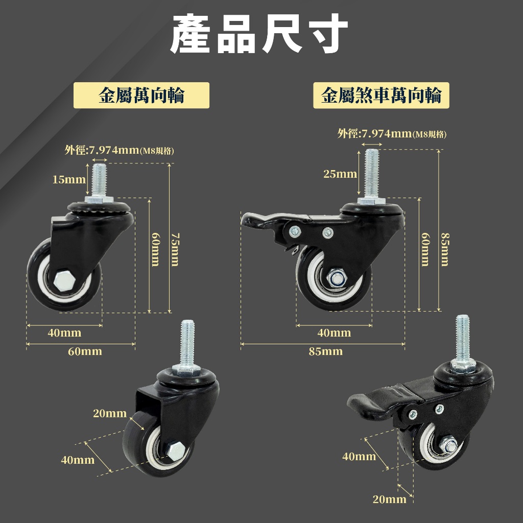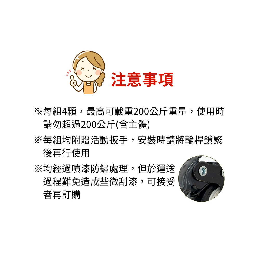 【FL生活+】岩熔碳鋼耐重置物架專用-升級版金屬輪組(萬向輪*2+萬向煞車輪*2+扳手*1) 鐵架 鐵力士架 貨架