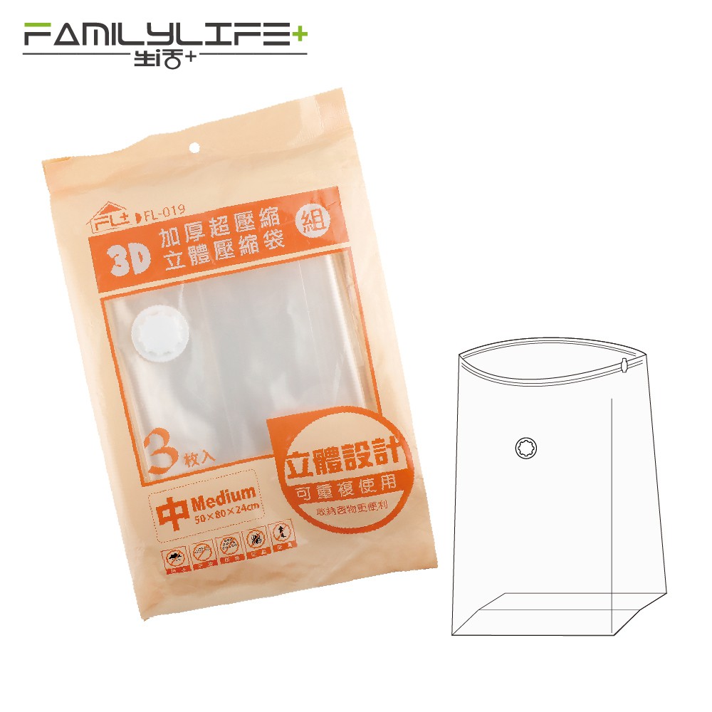 【FL生活+】D加厚超壓縮立體壓縮袋-M號 真空壓縮袋 真空收納袋 可重覆使用 棉被收納袋 棉被收納 衣櫃收納 衣物收納