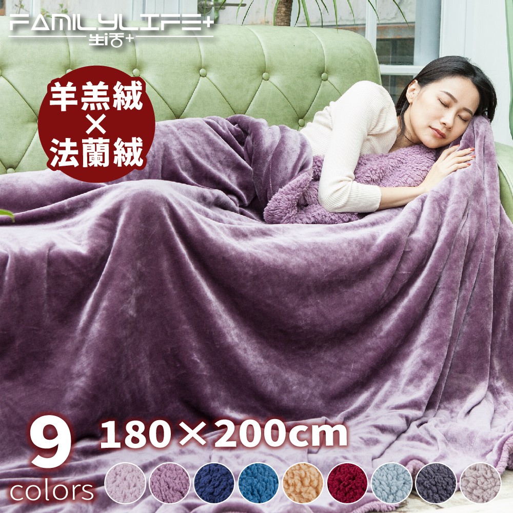 【FL生活+】雙人加大款-180x200公分-日式雙面羊羔絨x法蘭絨 保暖毯-保暖毯 法蘭絨毯 羊羔絨毯