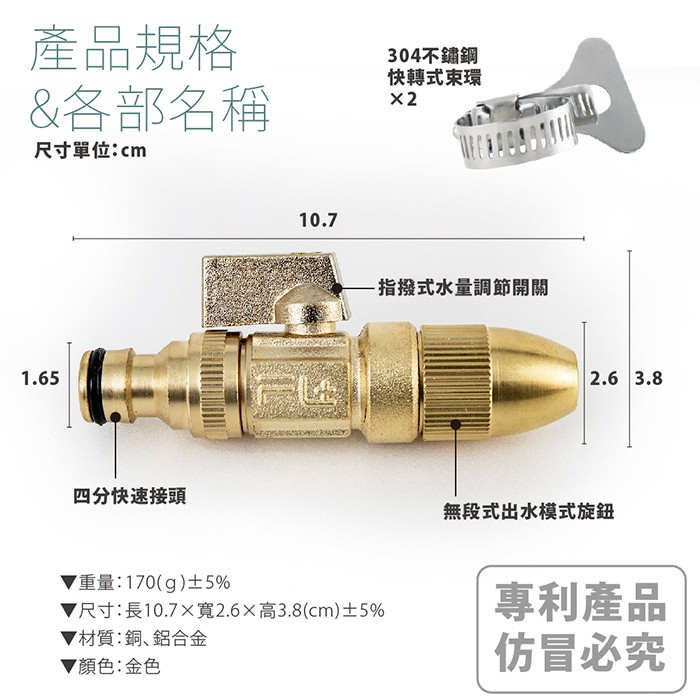 【FL生活+】金鎗客神級無段式高壓噴射水柱槍 純銅水槍 銅水槍 高壓水槍 水柱槍 高壓噴水槍