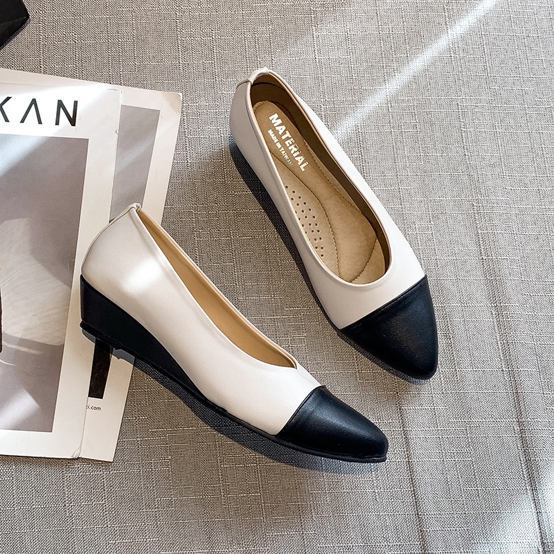 【白鳥麗子】【36-44全尺碼】尖頭鞋.MIT小香風皮革拚接楔型包鞋