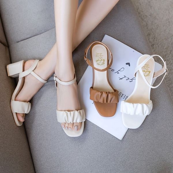 【白鳥麗子】粗跟鞋 MIT人氣雲朵抓皺繞踝高跟涼鞋 店長推薦