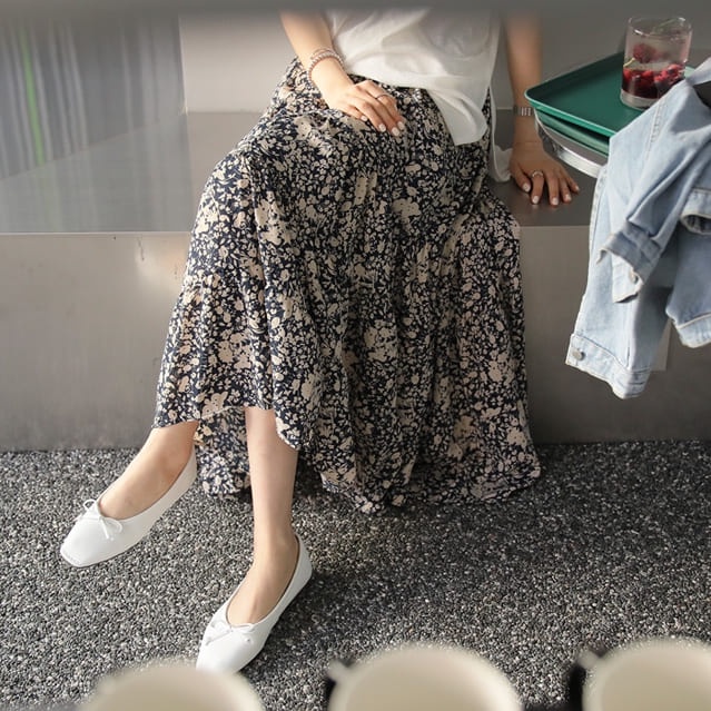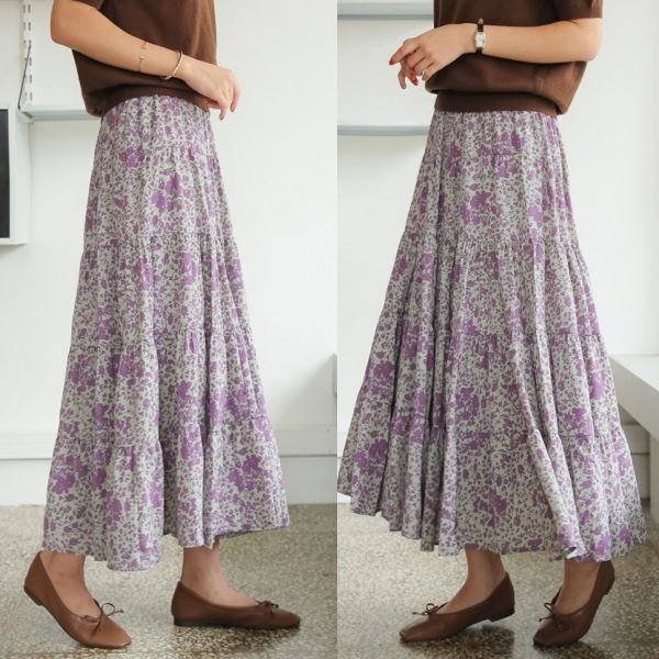 白鳥麗子 [現貨快出] 裙子 休閒度假印花鬆緊蛋糕長裙