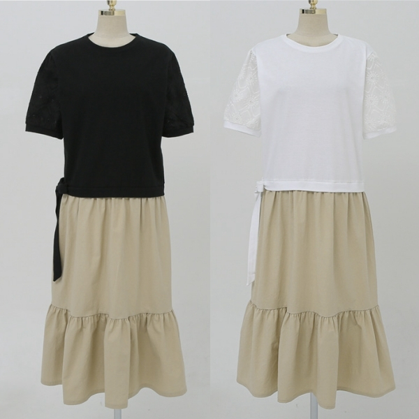 【白鳥麗子】連身裙 休閒假兩件側綁帶寬鬆圓領短袖洋裝