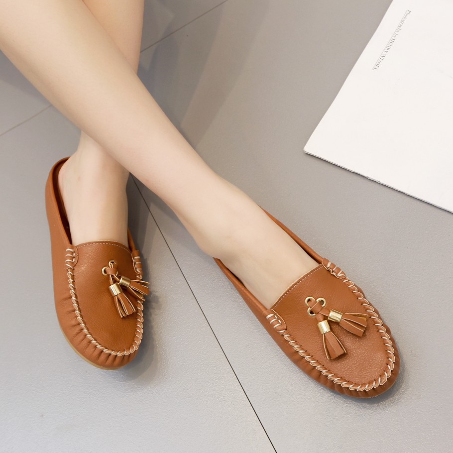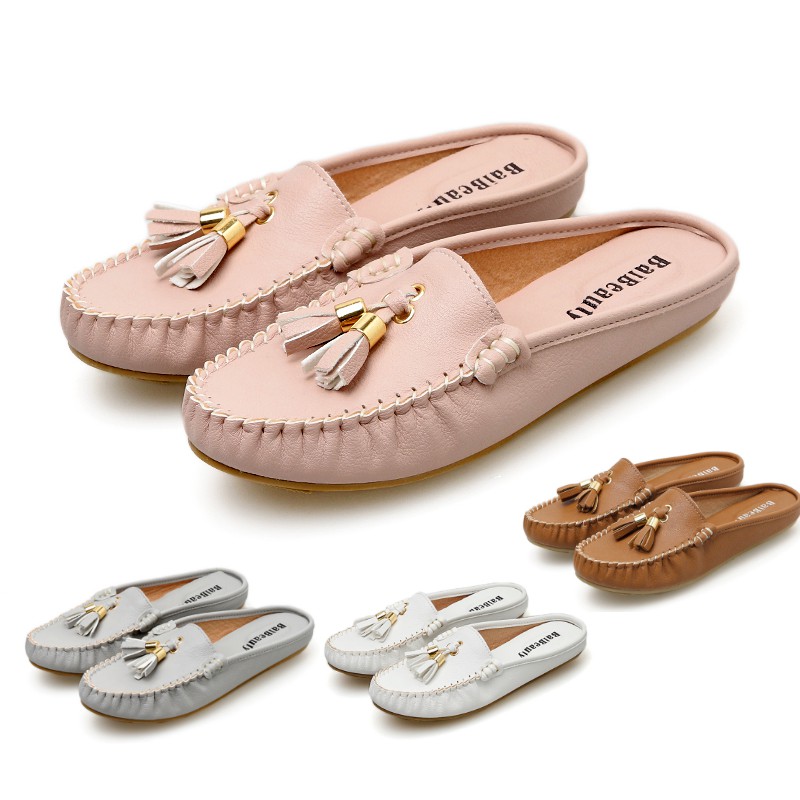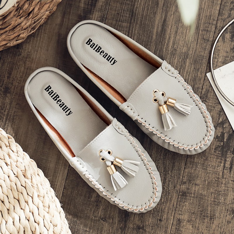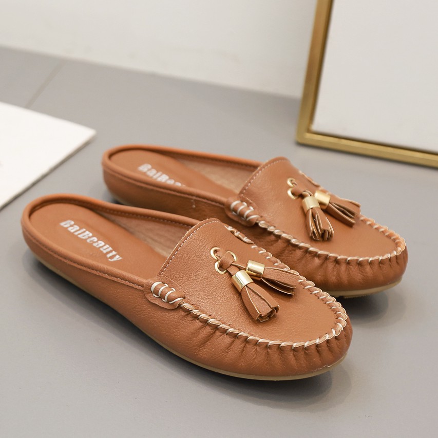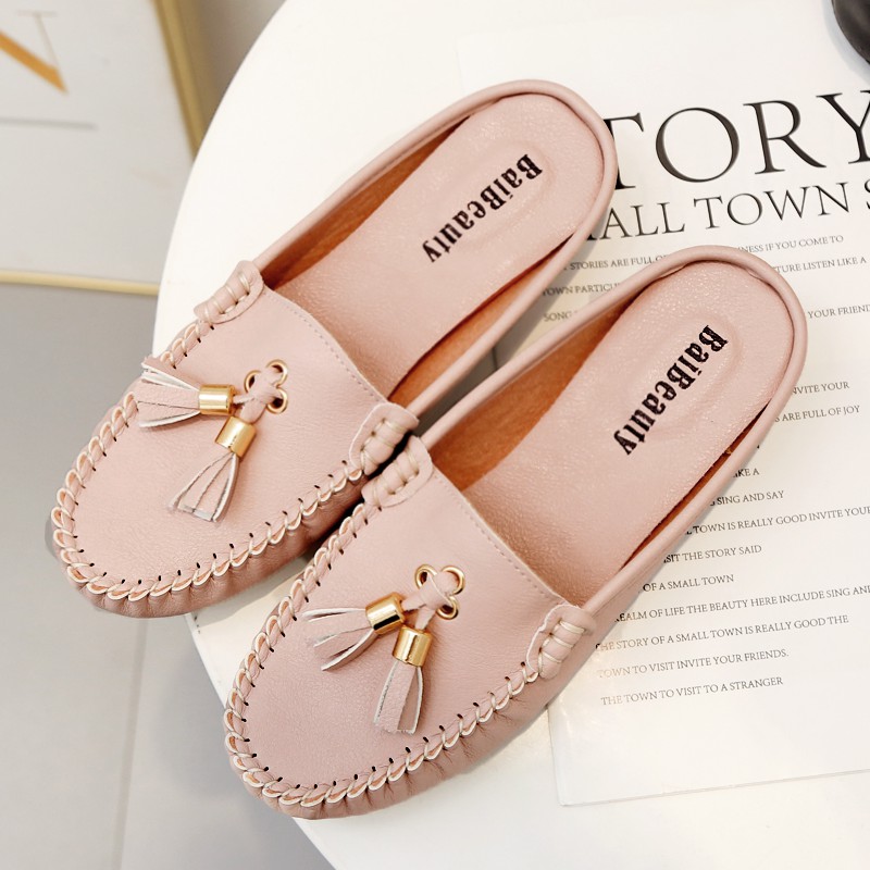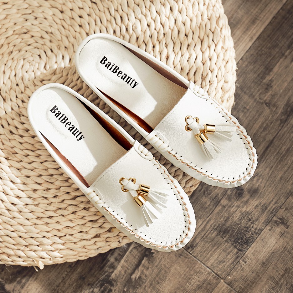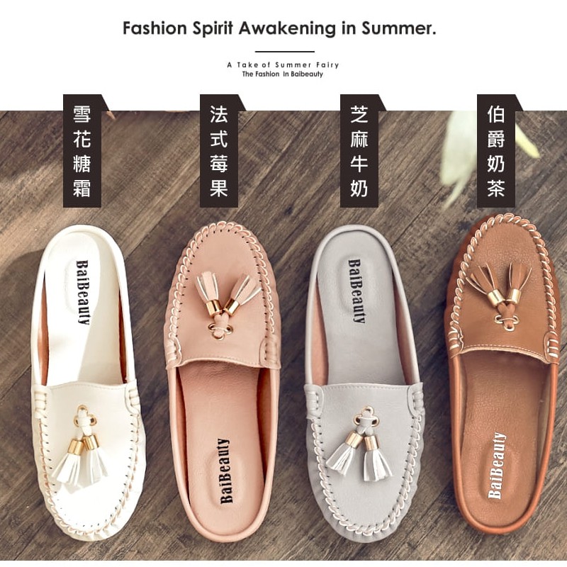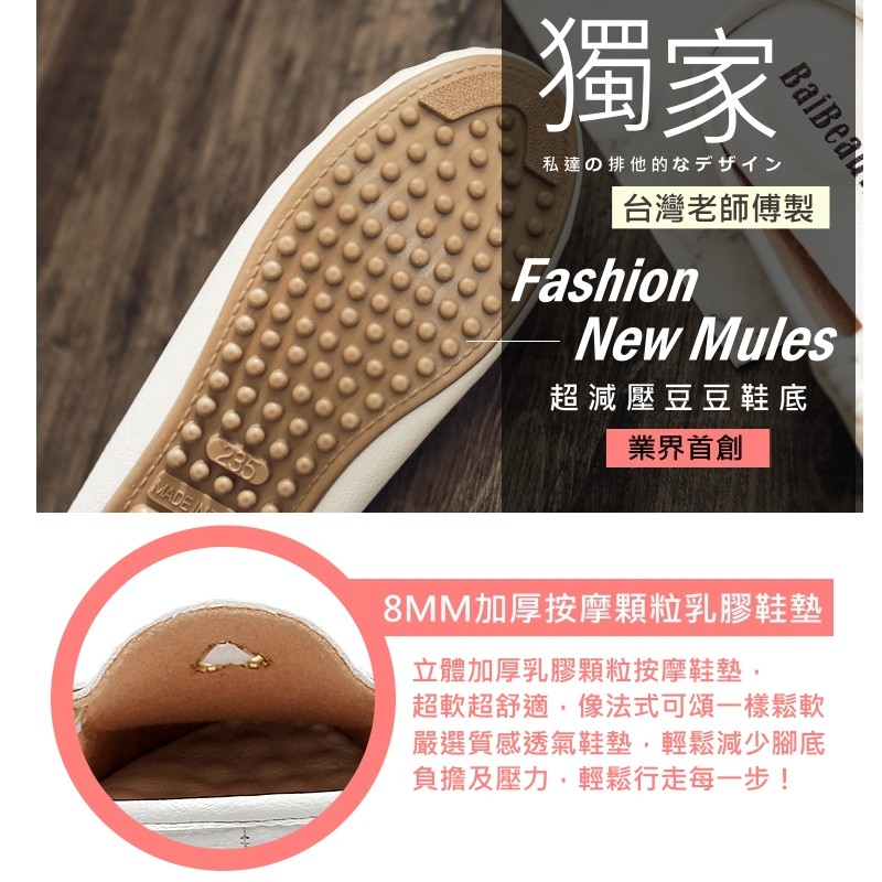 【白鳥麗子】【36-41全尺碼】法式可頌穆勒鞋 品牌自訂款 MIT經典流蘇超軟豆豆鞋底拖鞋