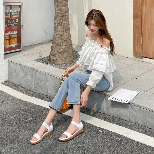白鳥麗子 [現貨快出] 台灣製 大尺碼鞋 一字帶 厚底涼鞋 平底涼鞋女 4色