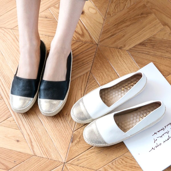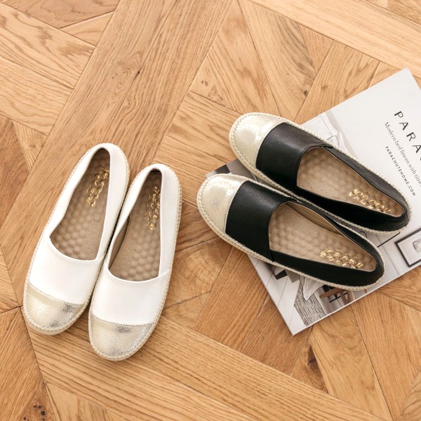 【白鳥麗子】 全尺碼 懶人鞋 MIT休閒經典拚色金屬圓頭平底包鞋