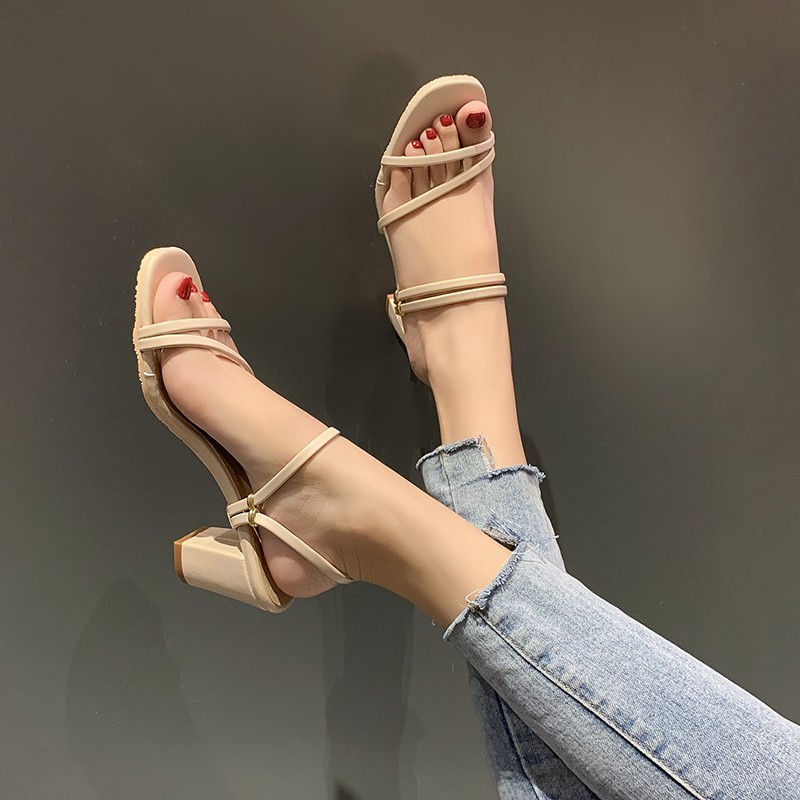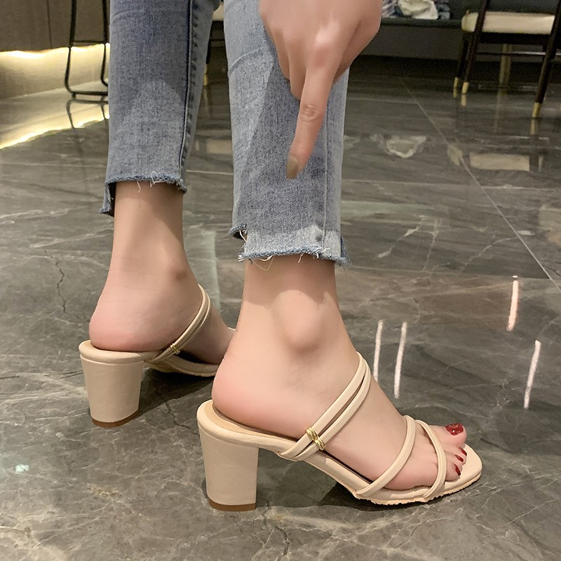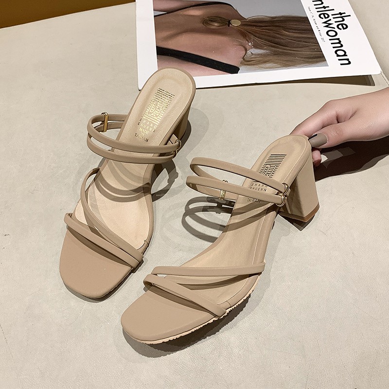 【白鳥麗子】可兩穿 MIT韓版氣質優雅斜系帶金屬環高跟涼拖鞋 店長推薦