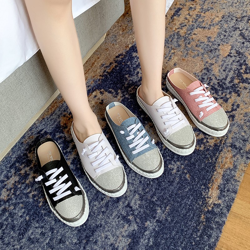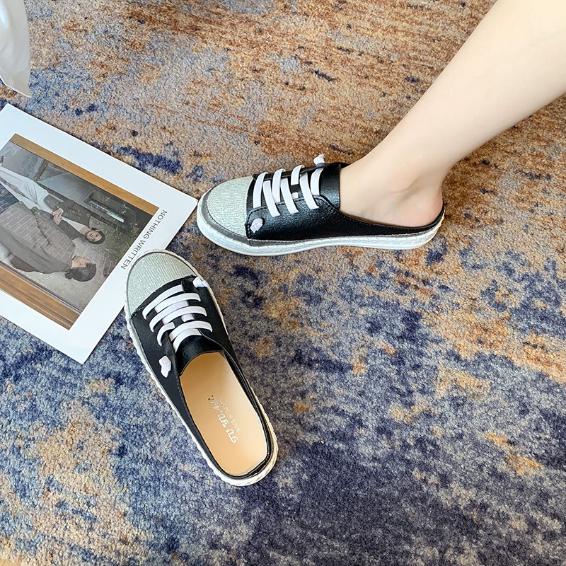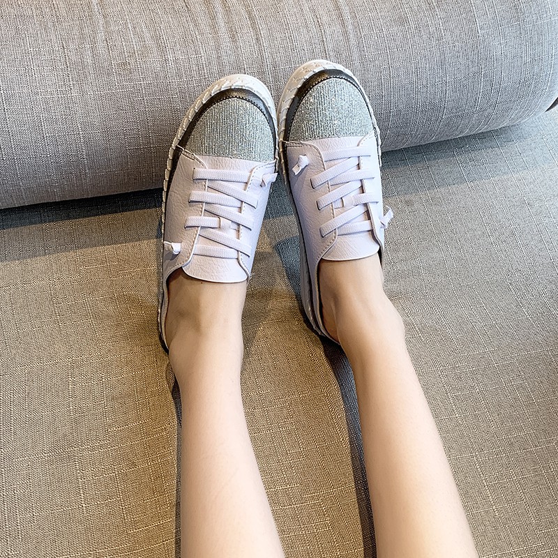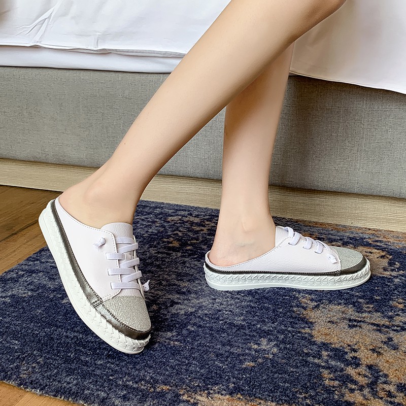 【白鳥麗子】拖鞋 MIT韓風金蔥拼接綁帶星星底圓頭厚底穆勒鞋