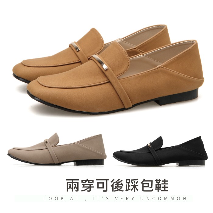 【白鳥麗子】可後踩 訂製款 MIT金屬條絨布樂福方頭平底包鞋