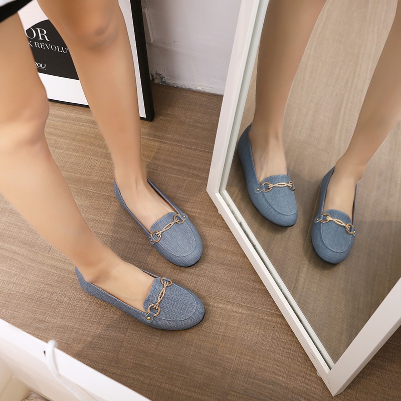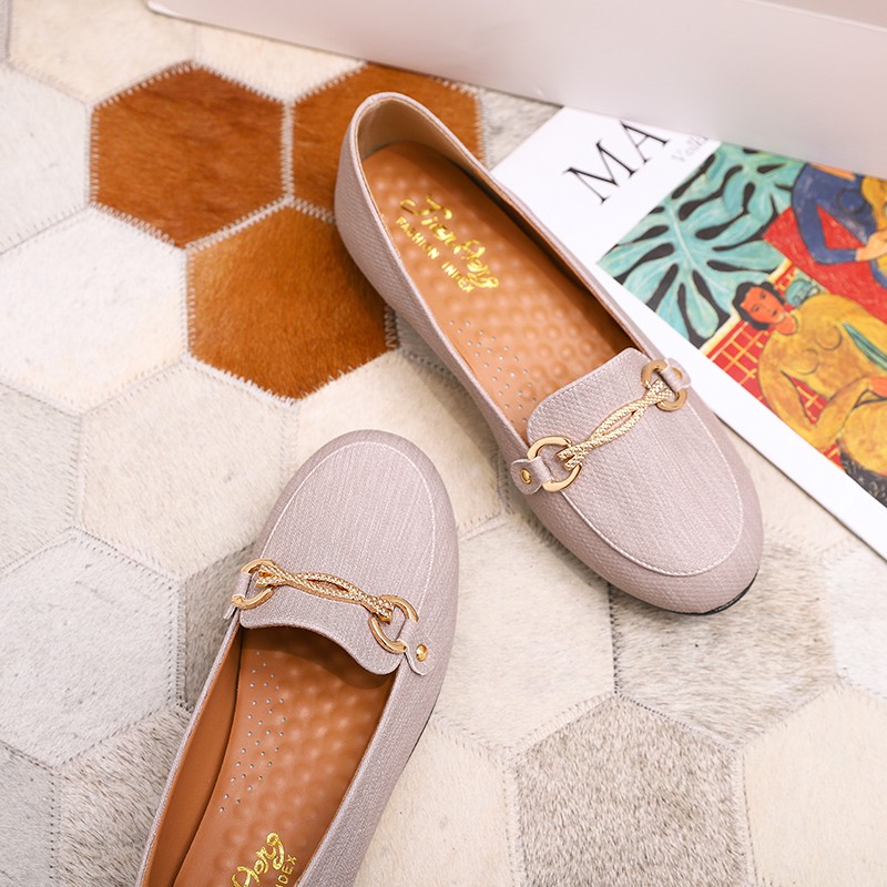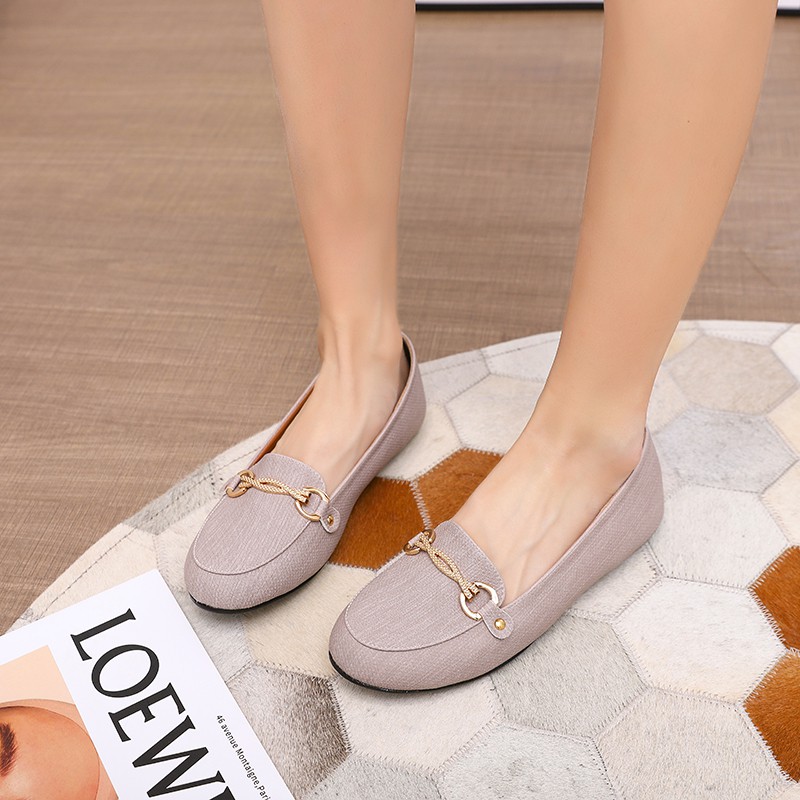 【白鳥麗子】豆豆鞋 MIT韓風質感布紋金飾扣平底樂福包鞋