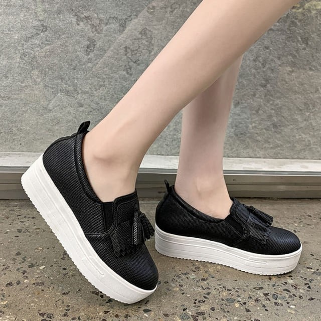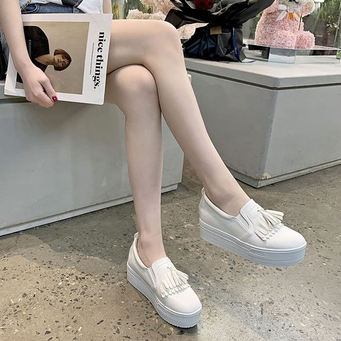 白鳥麗子 [現貨快出] 訂製款 MIT雙層流蘇拚色厚底休閒包鞋