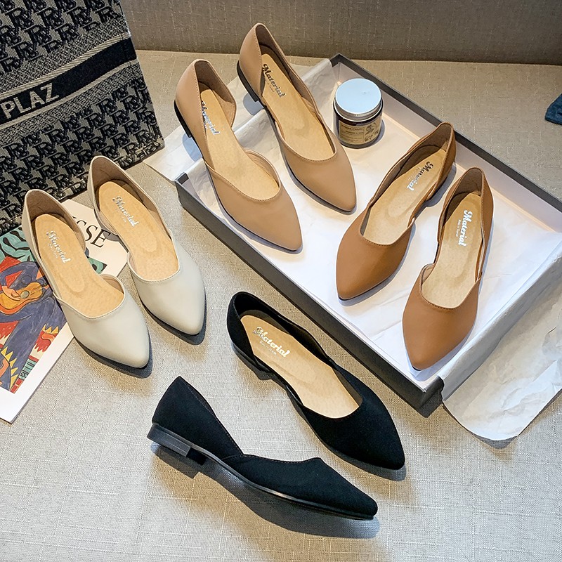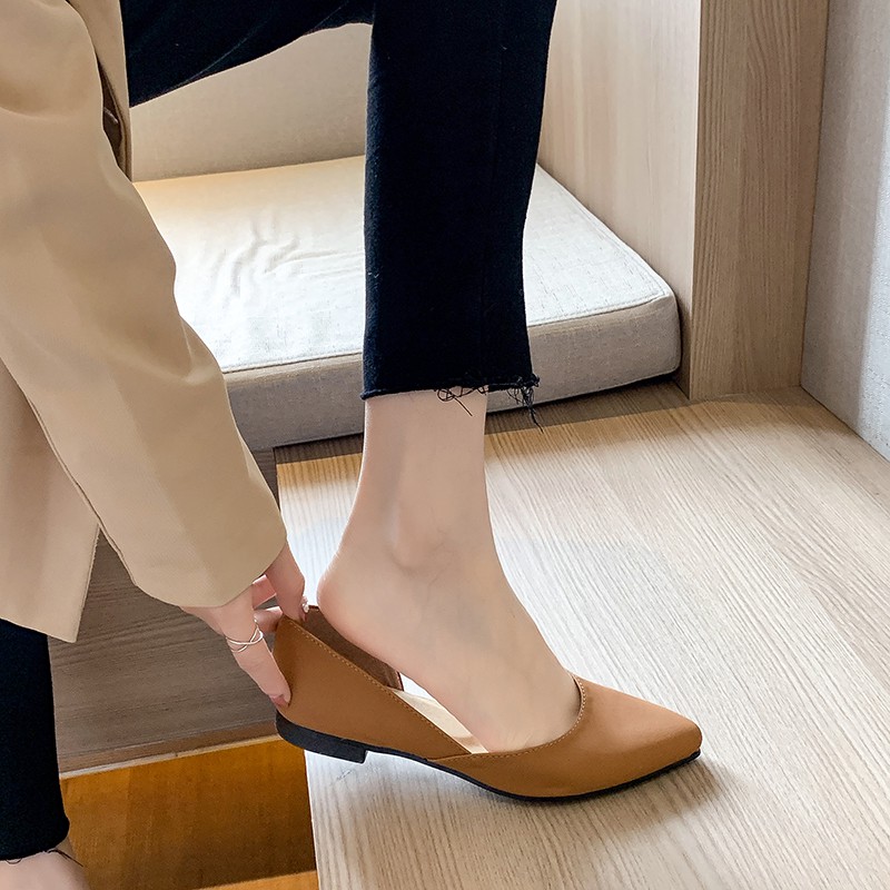 【白鳥麗子】尖頭鞋 MIT簡約素面側簍空平底包鞋