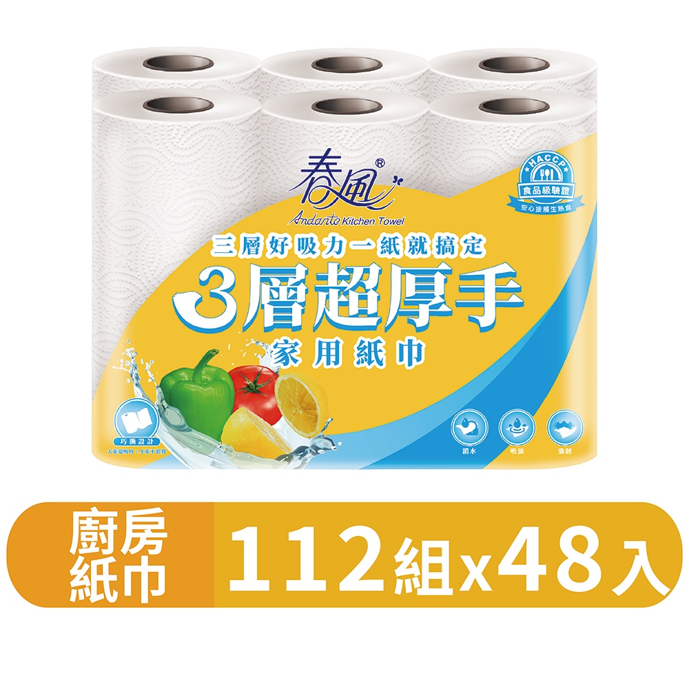 【春風】三層超厚手家用紙巾112組x6捲x8串/箱