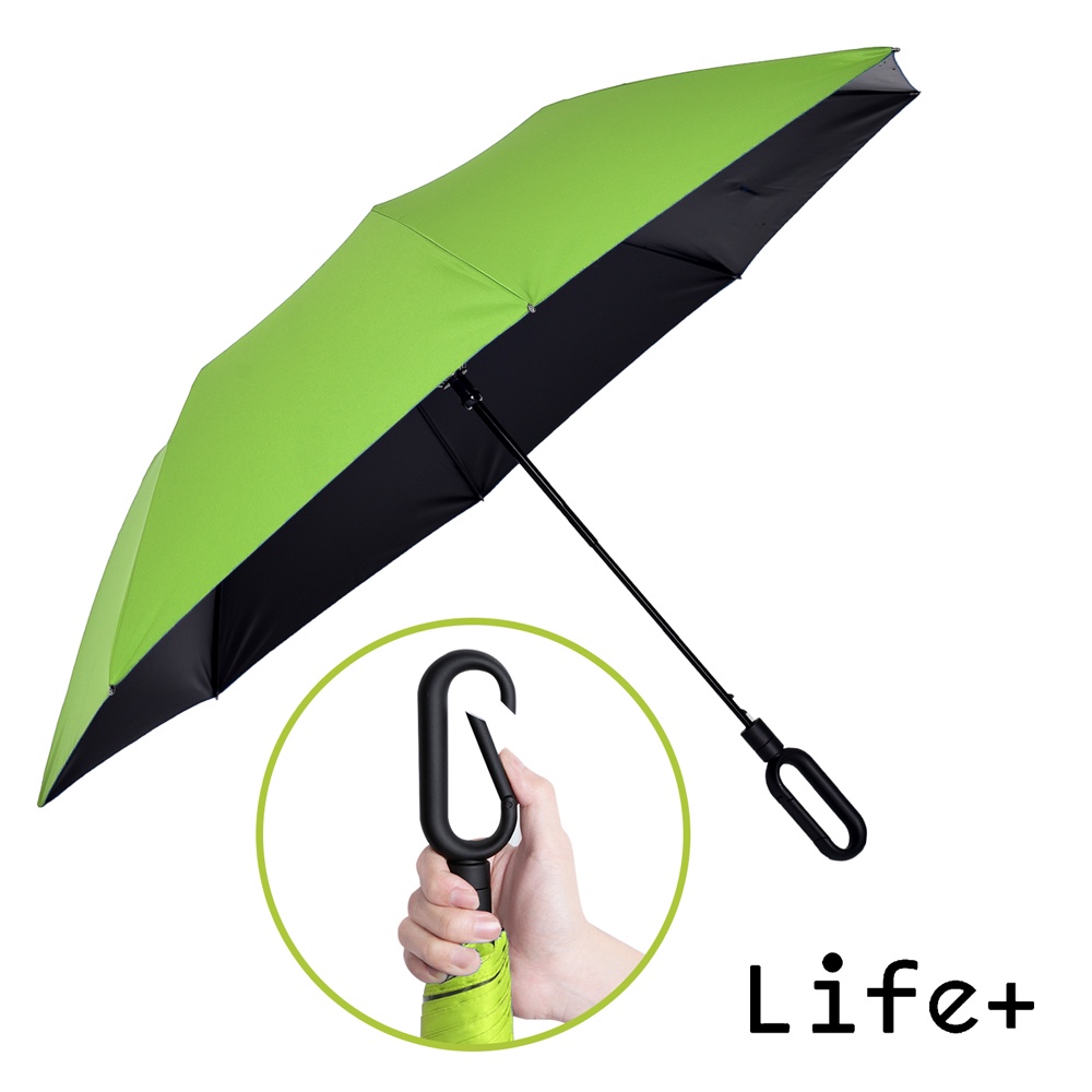 台灣現貨24H出貨【Life+】靓彩活力時尚100%黑膠降溫快扣兩折自動傘_螢光綠 晴雨傘 折疊傘 極輕傘 遮陽傘