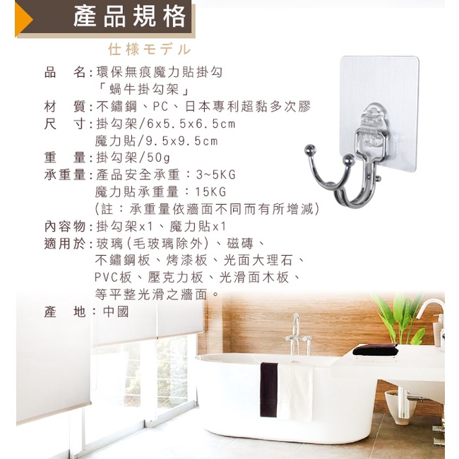台灣現貨24H出貨【Life+】環保無痕魔力貼掛勾-蝸牛掛勾架 (2入組)