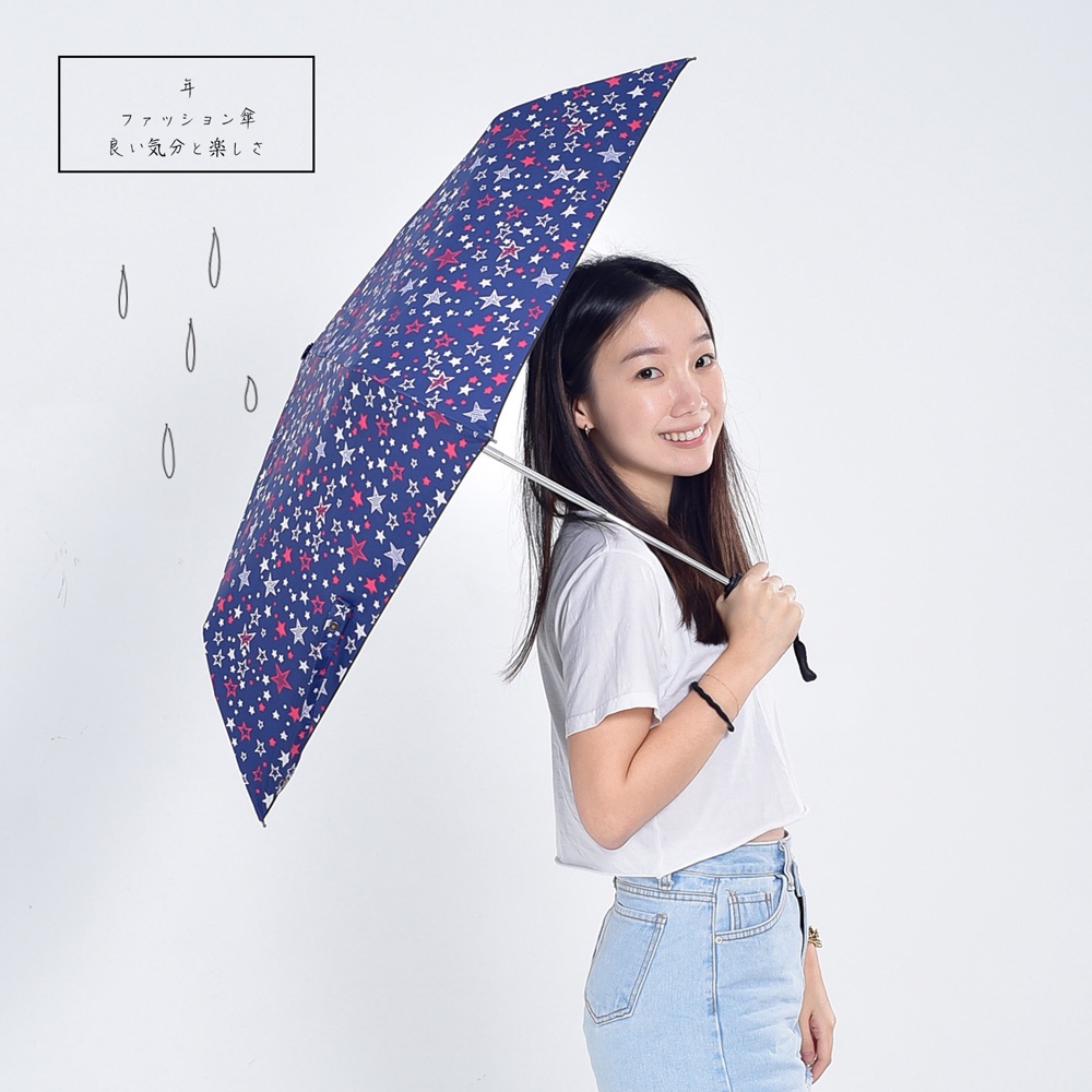 台灣現貨24H出貨【Life+】時尚滿版印花黑膠降溫晴雨兩用自動開收傘_星星 晴雨傘 折疊傘 極輕傘 遮陽傘 抗UV