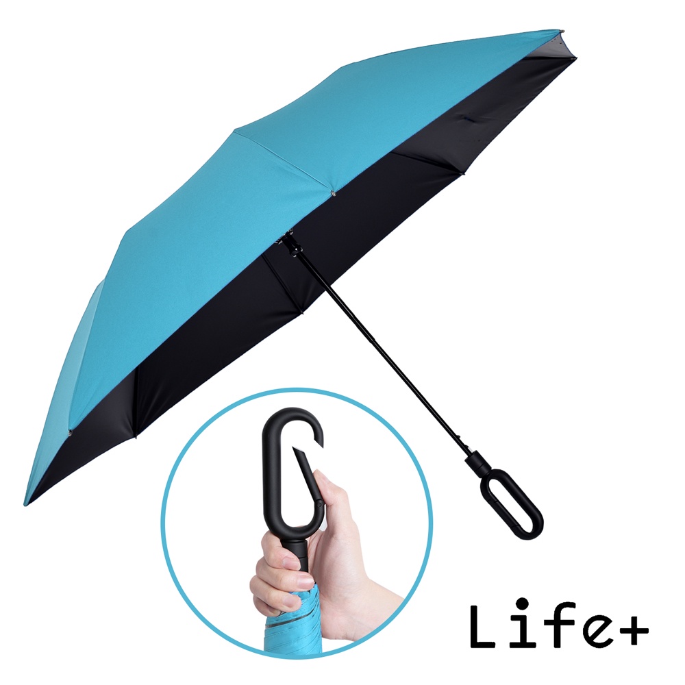 台灣現貨24H出貨【Life+】靓彩活力時尚100%黑膠降溫快扣兩折自動傘_天藍 晴雨傘 折疊傘 極輕傘 遮陽傘 抗UV