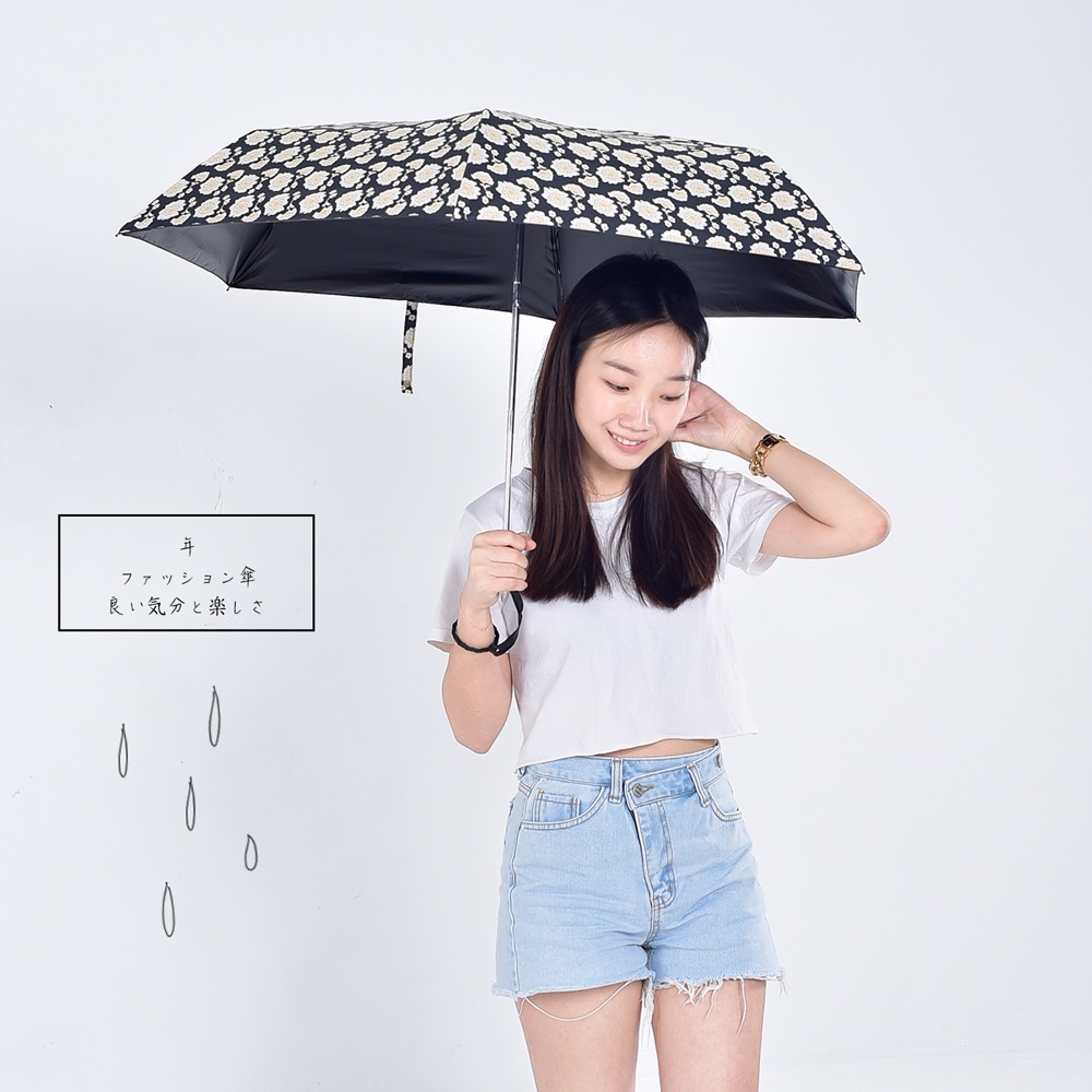 台灣現貨24H出貨【Life+】時尚滿版印花黑膠降溫晴雨兩用自動開收傘_花朵 晴雨傘 折疊傘 極輕傘 遮陽傘 抗UV