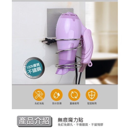 台灣現貨24H出貨【Life+】環保無痕魔力貼掛勾_吹風機架3入/組