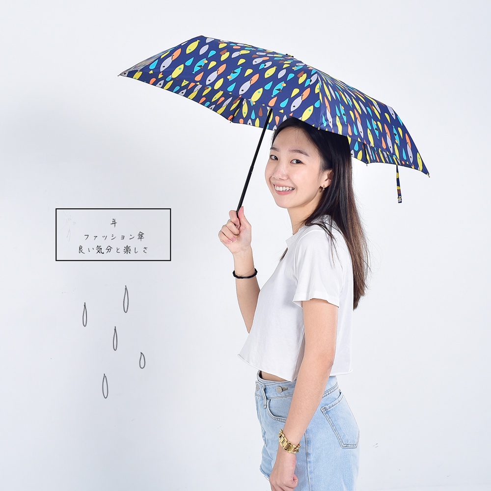 台灣現貨24H出貨【Life+】悠活彩魚輕量手開傘_附手提防潑水收納袋_藍色 晴雨傘 折疊傘 極輕傘 遮陽傘 太陽傘