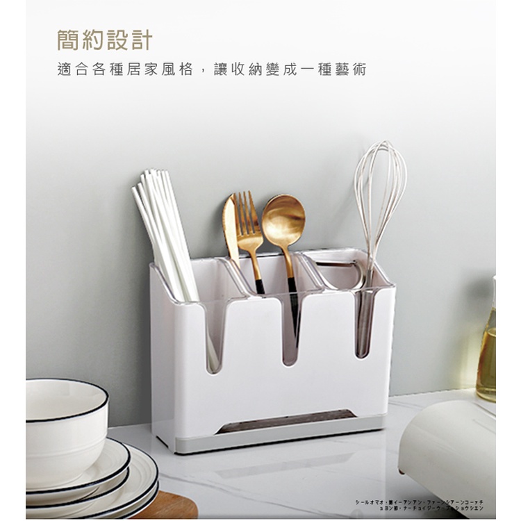 台灣現貨24H出貨【Life+】簡約系壁掛式分格餐具/筷子筒瀝水收納架_2入組
