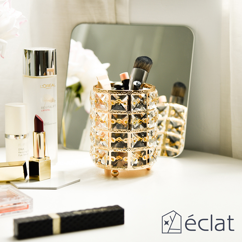 台灣現貨24H出貨【éclat 】極致奢華炫彩水晶化妝刷具收納筒/筆筒/收納盒