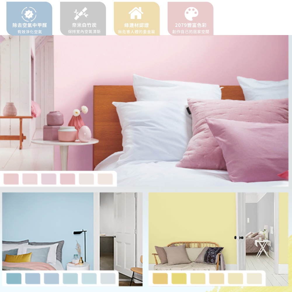 【得利官方旗艦店】A991 竹炭健康居除甲醛乳膠漆 夏日涼感色系 電腦調色(1公升裝)|客製化調色漆
