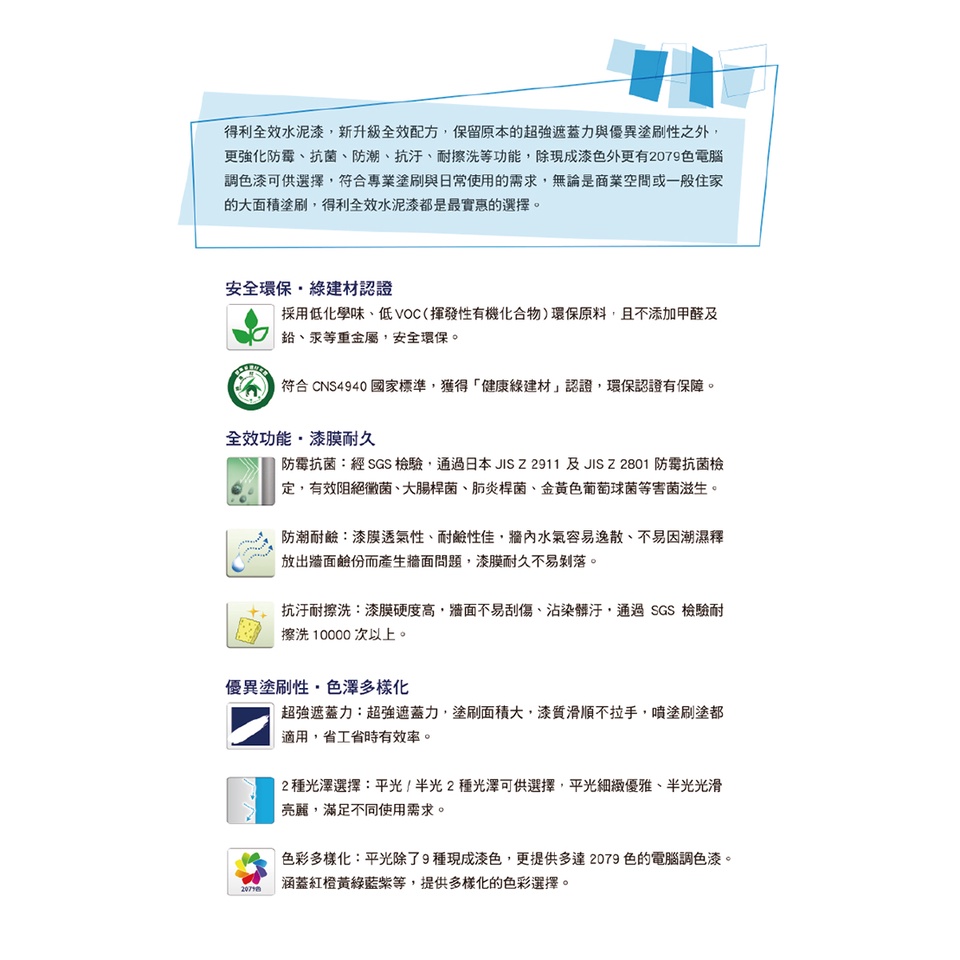 【得利官方旗艦店】A922 全效水泥漆 民宿風精選色系-采虹6號 電腦調色(8公升裝)|客製化調色漆