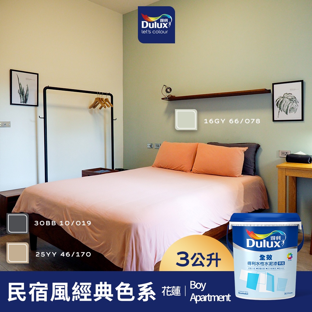 【得利官方旗艦店】A922 全效水泥漆 民宿風精選色系-Boy Apartment 電腦調色(3公升裝)|客製化調色漆