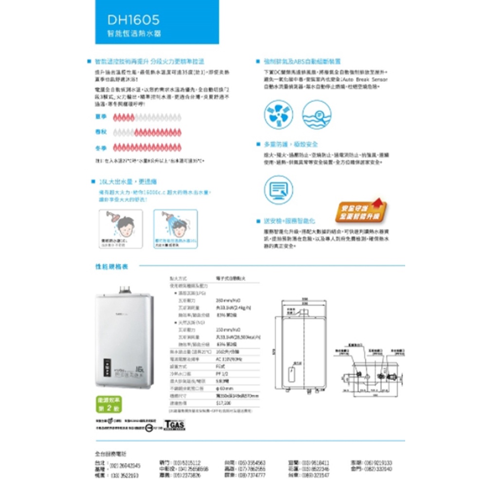 【櫻花】16L 智能恆溫熱水器 (DH-1605)