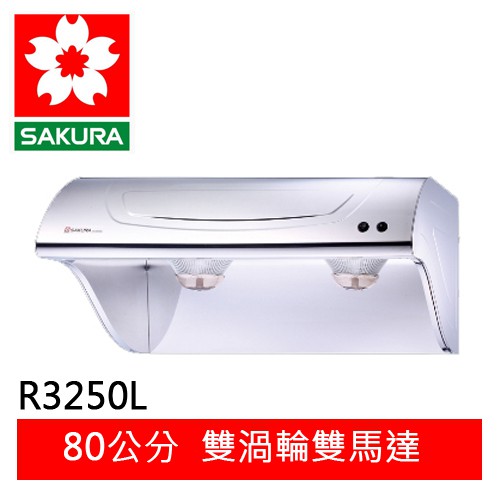 【SAKURA櫻花】 斜背式80CM除油煙機 R-3250L