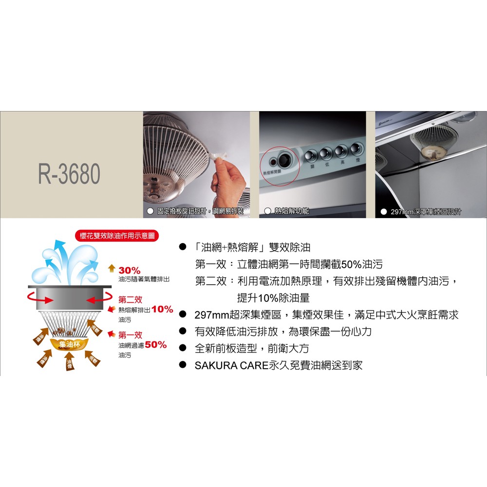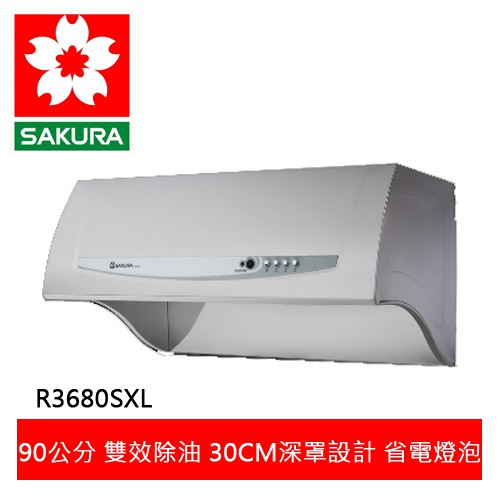 【SAKURA櫻花】90CM健康取向除油煙機-雙效除油 R3680SXL