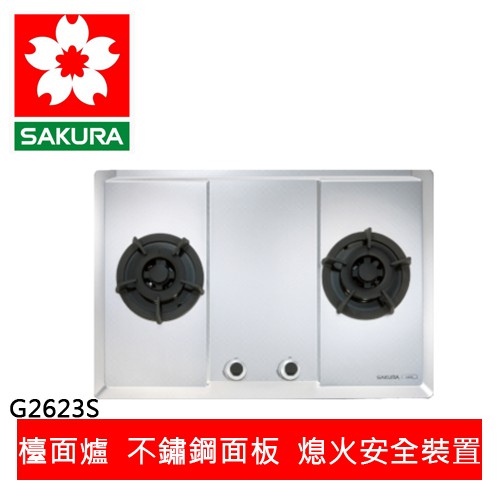 【SAKURA櫻花】 二口大面板易清檯面爐 (G2623S)