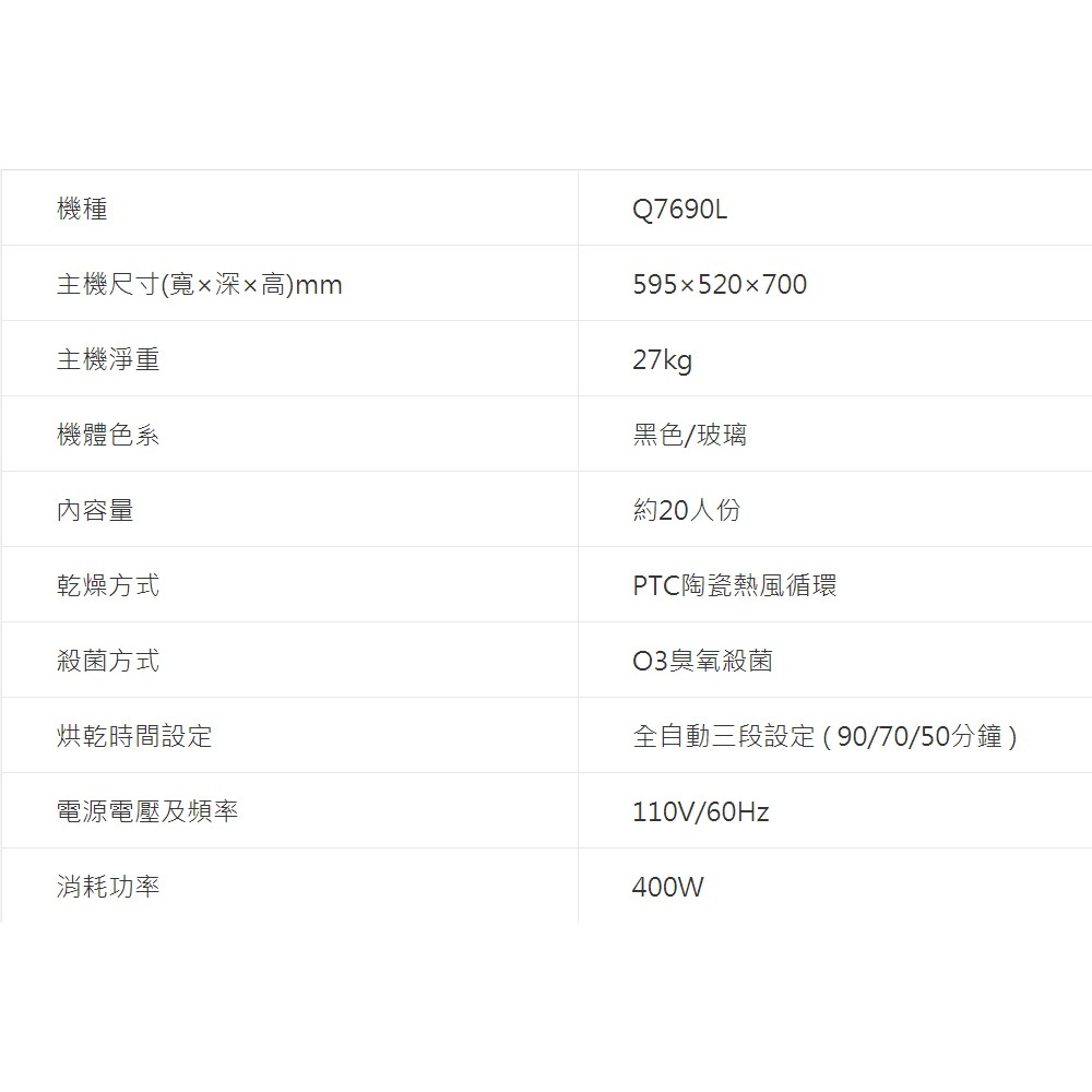 【SAKURA櫻花】 全平面玻璃觸控落地式烘碗機 (Q-7690L)