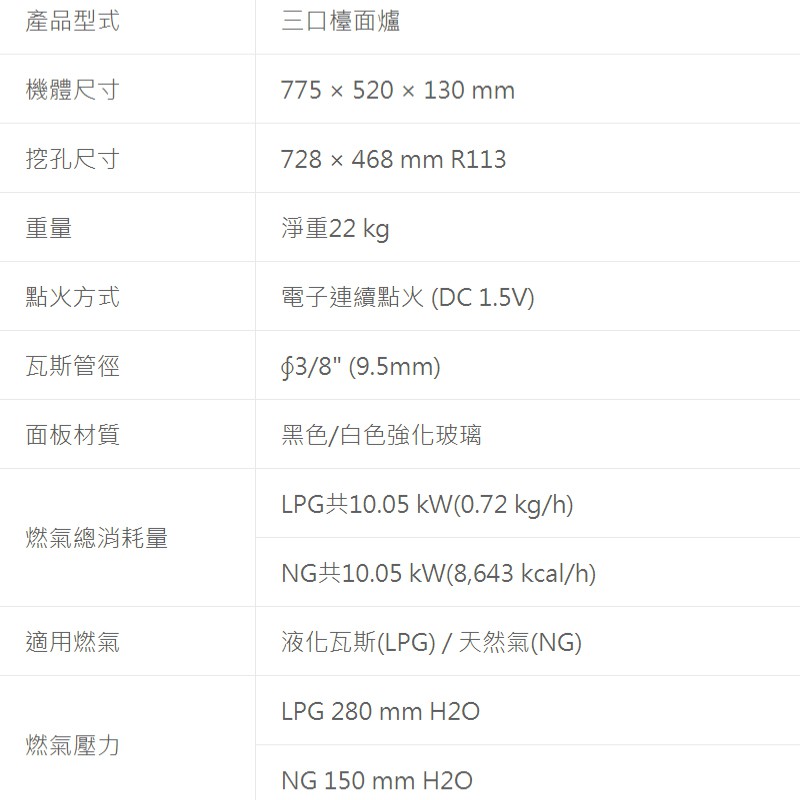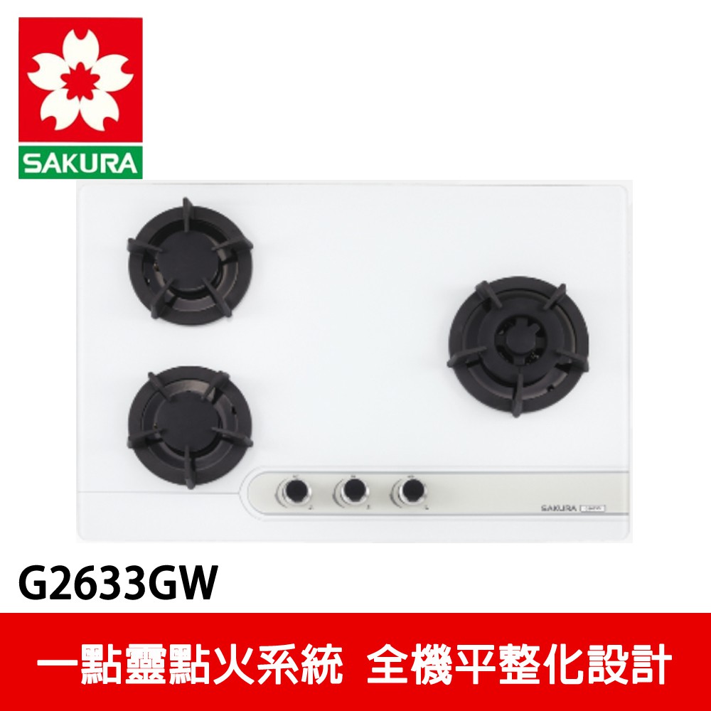 【SAKURA櫻花】三口大面板易清檯面爐 (G2633G)